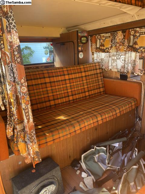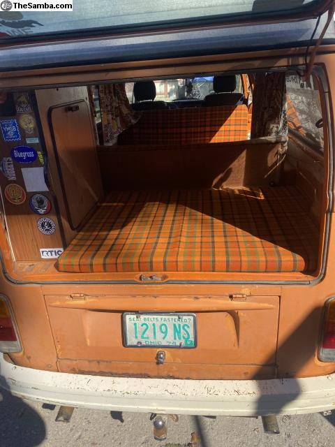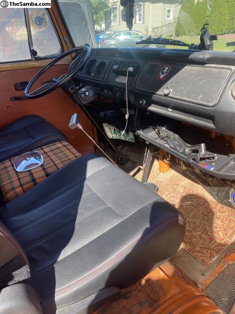 Nice driving bus. Has nice interior with very comfortable seats. Has under dash tray, Gene Berg shifter. Has an extra bench built behind front seats with matching material that has extra storage and diesel heater installed inside.