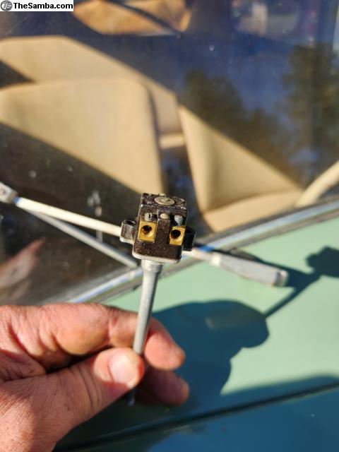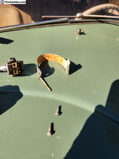 Semaphore switch with Black knob, very nice condition, all screws move very nice and freely, housing might need a painting, missing 1 screw that goes to the strap around the Colom