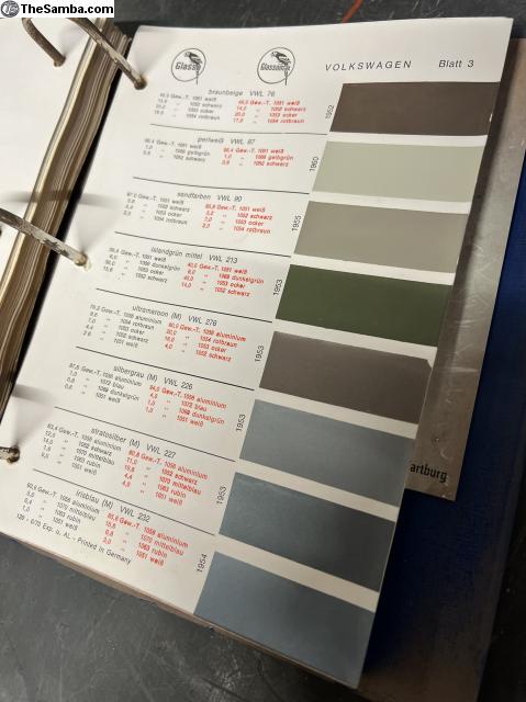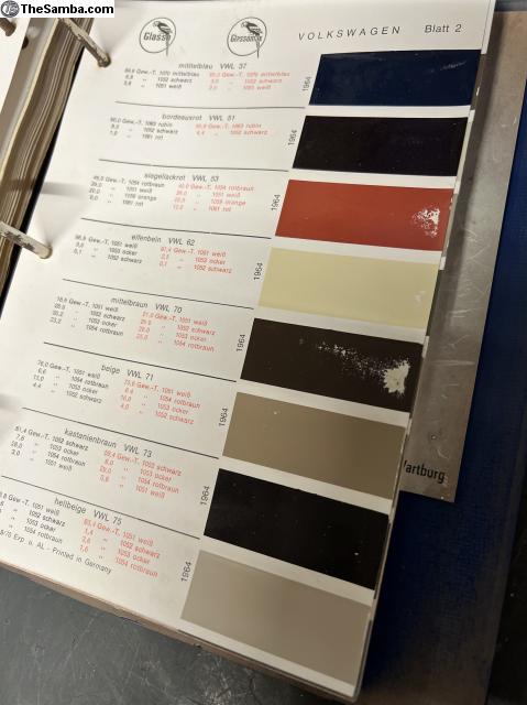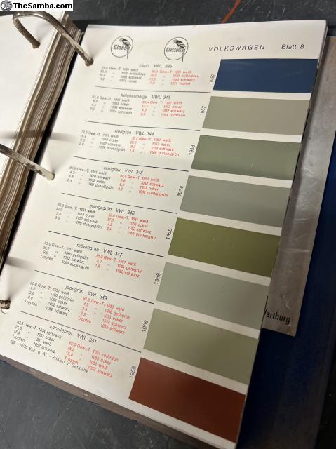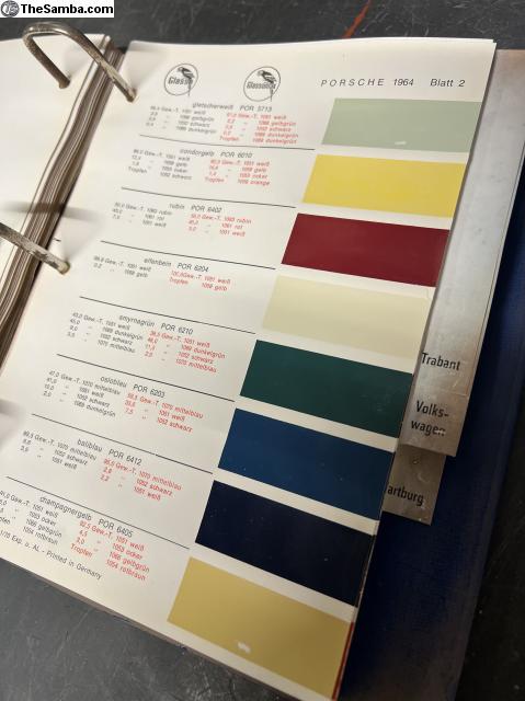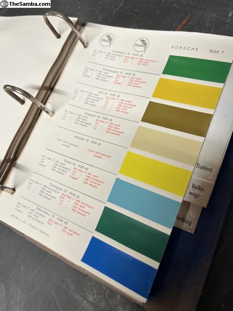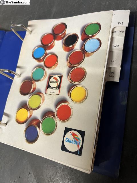 Glasurit paint books containing all Volkswagen, Porsche, Mercedes, BMW, Ford, NSU, Glas, Trabant, Wartburg, Auto-union, Ford and Fiat colors from early 50's to late 70's. I ship worldwide. 999€