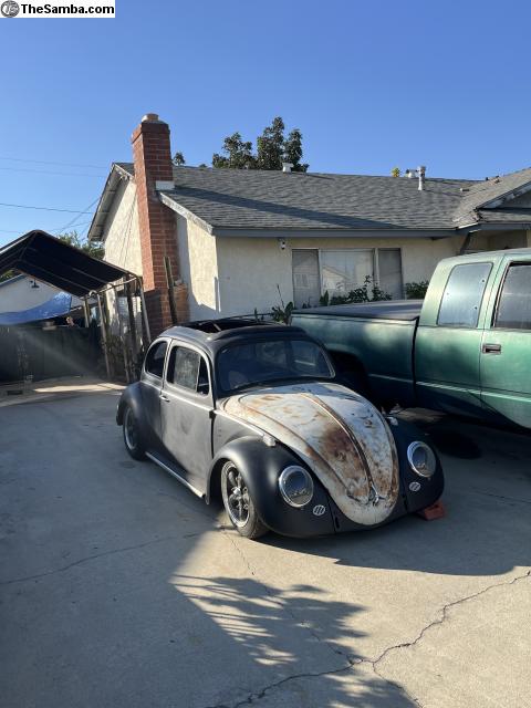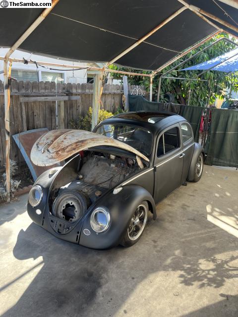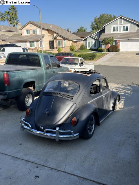 this is og clip grafted in a 1963 bug this is a project I started two years ago I stripped the car down to metal and did all the rust repair on it the car had minor rust thats all. i grafted in a og ragtop clip that was done right and fixed the radio hole. the car is opoxy primerd and ready for body work, the doors close perfectly and floor pans are good just patch on the ps. the car has a 3 inch beam with drop spindles and disk brakes in the front, there is no motor what you see is what you get.