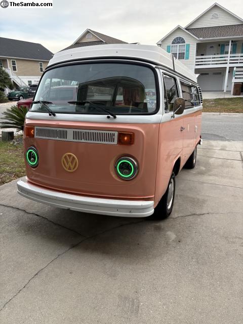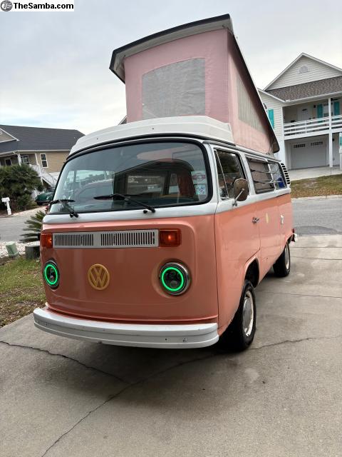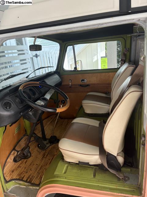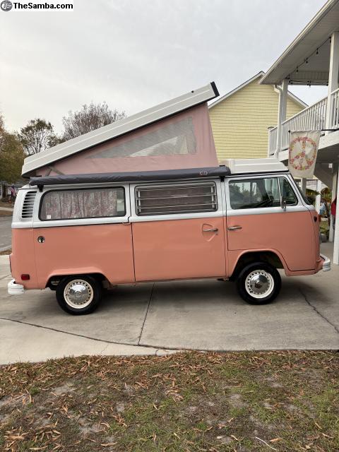1978 VW Bus Campmobile Westy Type II. Peach exterior with green interior. <1K miles on Replaced engine and transmission Sept 2024 with new EMPI 1600 magnesium long block and rebuilt transmission from RANCHO. I've owned it since 2019. I kept routine maintenance, I.e oil change every year or thousand miles by a certified VW mechanic. Log as follows: