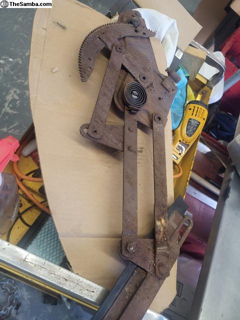 Here is a rh door regulator from a 70 vert. Works as it should. Has some surface rust..