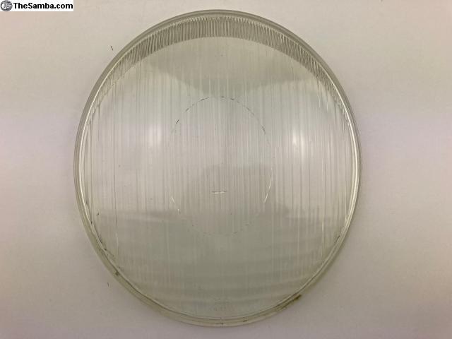 Old symetric HELLA headlight lens "21334" and says "oben" (top). Has the old-style HELLA logo with the crown. Looks to be in good condition.