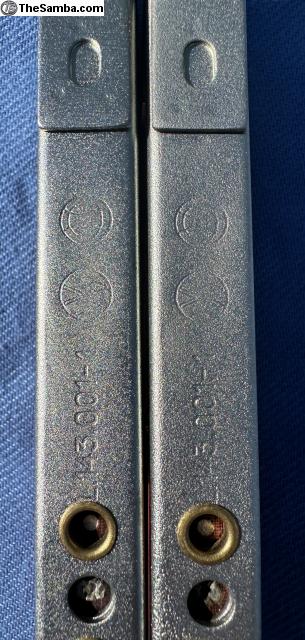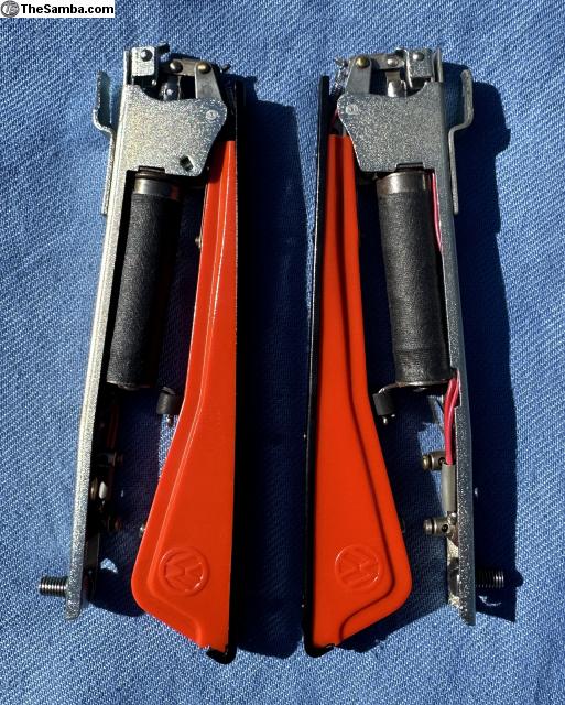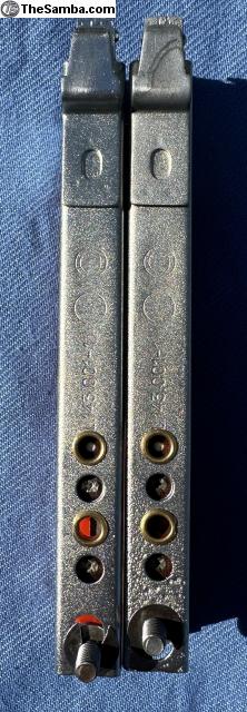Semaphores were completely disassembled, all parts were cleaned, bodies were zinc plated, new reproduction orange lenses, arms were refinished in black urethane. Matched date code 1/12 which translates to December 1951 according to information from TheSamba.