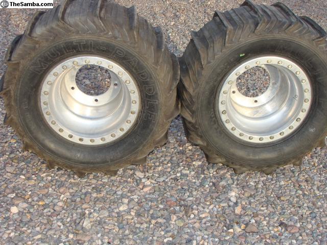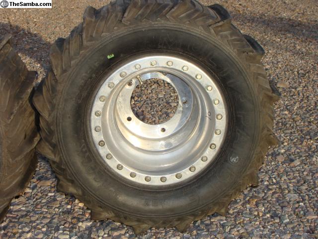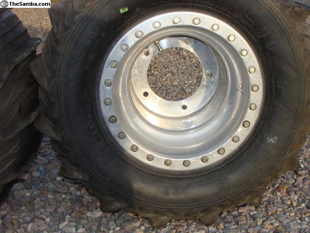 NEW 1450 tires mounted on aluminum beed lock wheels.
