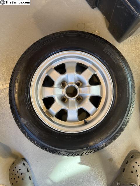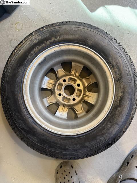 Porsche 924 wheel with nos tire. Was a spare tire looks to be never used.