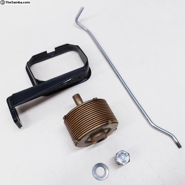 Includes: powdercoated bracket, German 65-70 degree thermostat, correct Kamax thermostat bolt, brass coupler, and steel connecting rod.