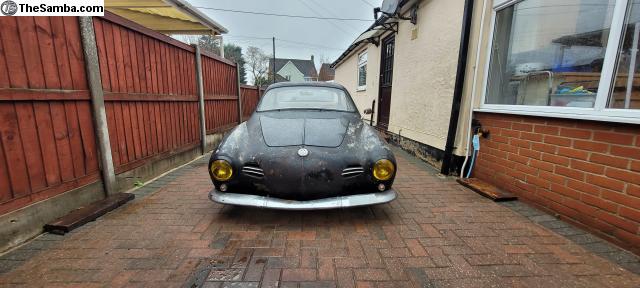 Factory black 58 lowlight karman ghia mostly original paint with a killer looks .I purchased this car and it did need to be redone so I've totally took all te running gear off and rebuilt the whole thing from the start again so its running a limebug 8 inch narrow bean , drop spindles, the back is on adjustable spring plates with spax shocks .