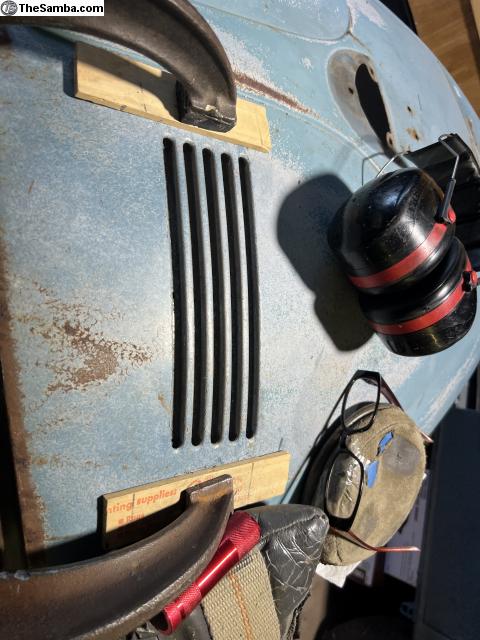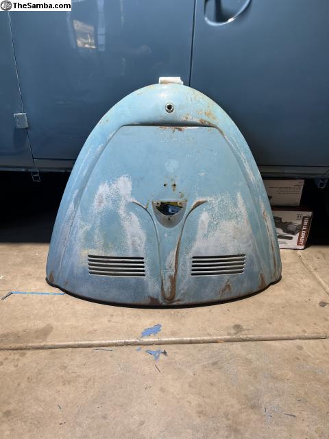 This is a ‘58 to ‘63 D'Lid that we have stamped OG style louvers into with our Die process (no Welding). This is an original OG Patina paint. Very rare to find such a nice decklid that has never been abused and is in the original VW color. Ask around and you'll find that our craftsmanship reputation is excellent for our decklids. You can see this declklid in person with our distributor Paul from Rusting Relics at any of the local shows. Paul always has our decklids on display at Pomona and most of the local So Cal VW shows. www.VochoWerks.com