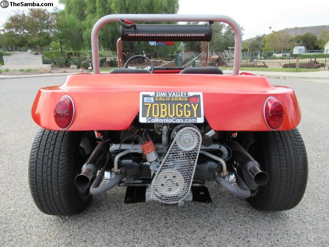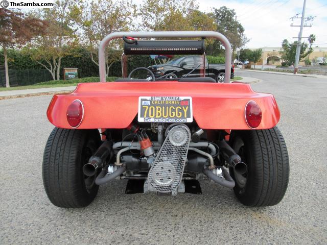 Need a fun little Buggy for the Beach House or Mountain retreat? This one is a head turner with it's Tangerine Orange Metalflake finish and staggered 15 inch 5 lug Polished American Racing wheels. The Bremen factory body is in great condition and it even comes with a removable Hardtop, dual This car was a labor of love for the previous owner and it has had lots of upgrades and servicing done including new disc brakes, new suspension parts, wiring, clutch and so much more! The 1600 Single Port VW engine runs great and the 4 speed transaxle shifts easily the way it should. The interior has a set of Black custom upholstered sport seats, rubber flooring, 3 Spoke chrome classic sport steering wheel, Silver roll bar with custom mounted EcoXGear Blue Tooth Speaker with LED lighting, dash mounted USB socket for charging your devices, locking glove box, ABS center console with cup holders and a super cool Orange dice shift knob! This is a fun toy and you can't get much simpler than a VW powered Dune Buggy!