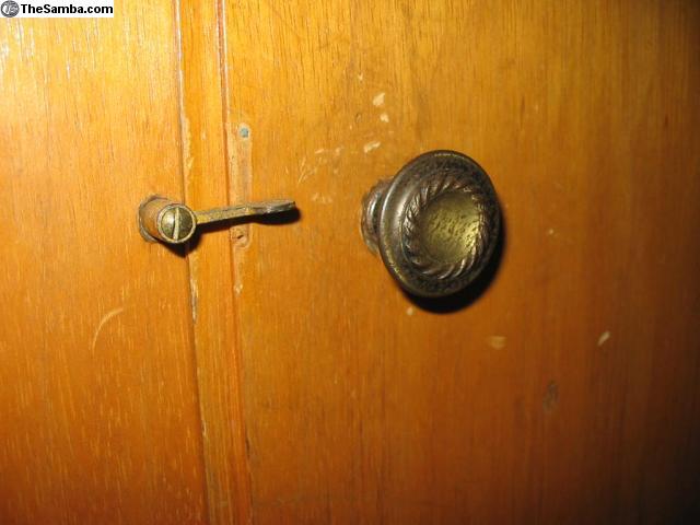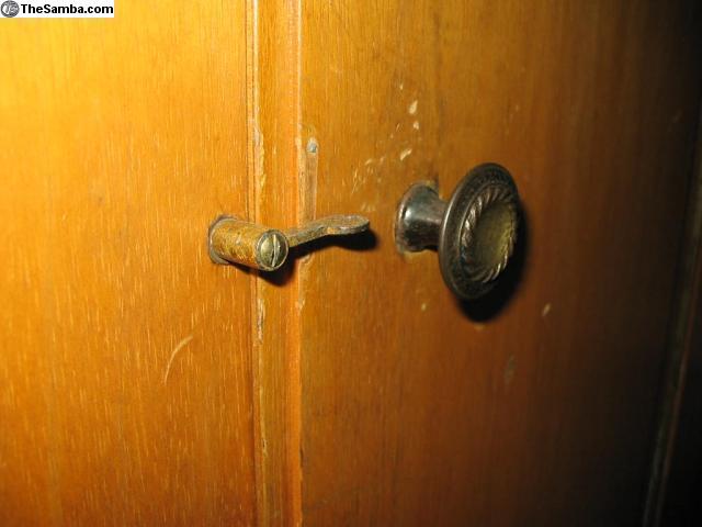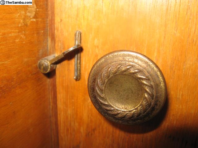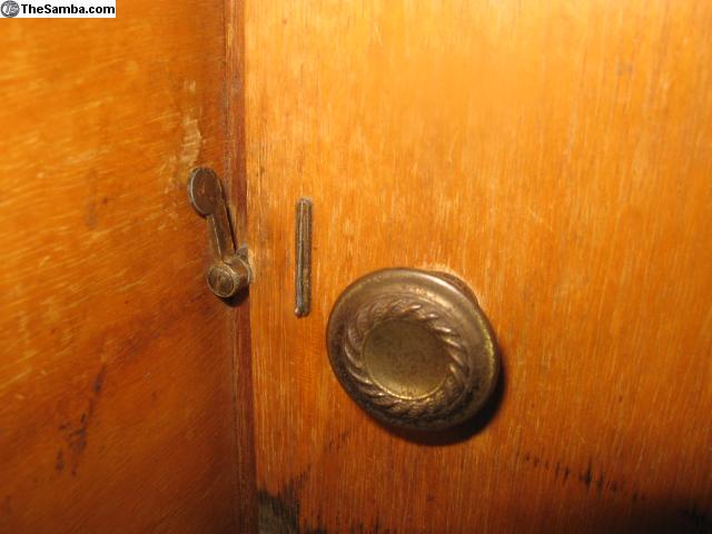 I need a couple cabinet knobs for my '58 Westfalia. I'm also missing a couple of the little strikers on the outside (it's missing from the picture). I'll even buy complete cabinets if you want to sell them complete.