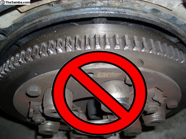 This post shows the damage to a 6 volt flywheel caused buy running a 6 volt starter in a 12 volt system. This causes the teeth on the 6 V flywheel and the starter to wear and even chip off. Your flywheel is being damaged with a 6 V starter operating with 12 V, EVEN THOUGH NO ABNORMAL SOUND IS PRESENT! The people who think it’s OK to operate a 6 V starter in 12 V system have not taken into account the cost of repairing the damage to the starter and flywheel or the cost of the labor.