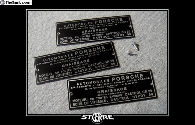 This is a new reproduction serie of the Sonauto lubrication plate fixed on the fan shroud of the french 356 Porsche's.