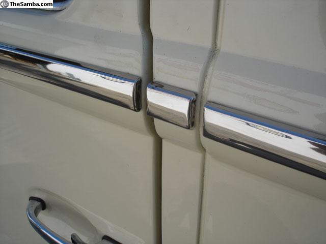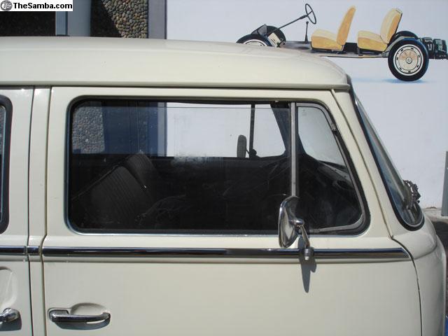 originally bay window molding changed in 1972, as the short piece in front of mirror is slightly shorter and with a rounded tip, instead of the earlier longer and curved shaped tip ( matching the contour of the door )