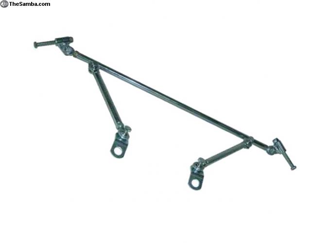 Truss Bars tie in the VW frame horns to the shock towers on the rear of all Type 1 Volkswagen suspensions both swing axle and IRS for the added support necessary when any form of performance driving is anticipated. The Truss Bar assembly is a complete bolt-in kit. No welding required! Kit is supplied with all necessary hardware for linking the frame horns to the shock towers and then supporting the bridge across the shock towers. Adjustable rod ends allow for the ultimate adjustability and adaptability for easy fitment to vehicle applications as well as preload adjustment for competition style uses. Added support to the frame horns helps eliminate flexing and twisting which causes wheel hop and frame horn damage. Truss Bars are an excellent addition to any street or off road application! Some trimming may be required around the original shock boss for certain applications. kafer cup. Weld bungs and heim joints are used to build truss bars. We normally keep truss bars in stock but are sometimes at the mercy of the component parts supplier. Please let us know if you are in a hurry. Check out our website link or just give us a call (714)815-9661 PST