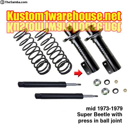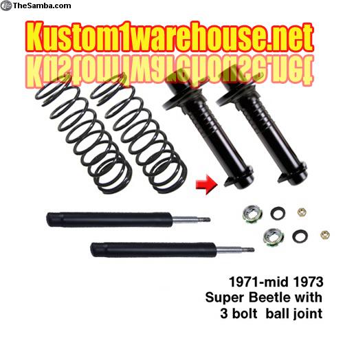 For a lowered strut kit, go to http://www.kustom1warehouse.net/Super_Beetle_lowered_struts_p/loweredstrutkit.htm