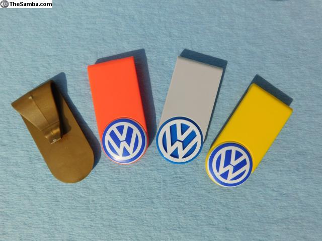 Pick your favorite color(s) and add one or more of these rare badges to your Volkswagen collectibles and display case! They can also double nicely as a pretty cool VW money clip when you're in the Swap Meet. $8.50 for one badge with domestic U.S. postage included, and you don't have to spend all that money to fly all the way to Germany to get one for yourself (although I haven't seen them used anymore during my recent visits for the past decade or so)! And if you'd like more than one badge, simply add $3 for each extra badge sent within the USA (example: for two badges, the total would be $8.50 plus $3 = $11.50 total). Mailing to USA destinations is included, international destinations will obviously cost a bit more, so ask about that. And I'll make you this deal: buy all four of the colors that I still have available for $18 shipped within the USA! I'm happy to accept your payment either USPS Money order (no extra fee) or via Paypal (shipping starts right away) but note that if you pay with Paypal you'll pay their fee (just add 3% to the total cost).