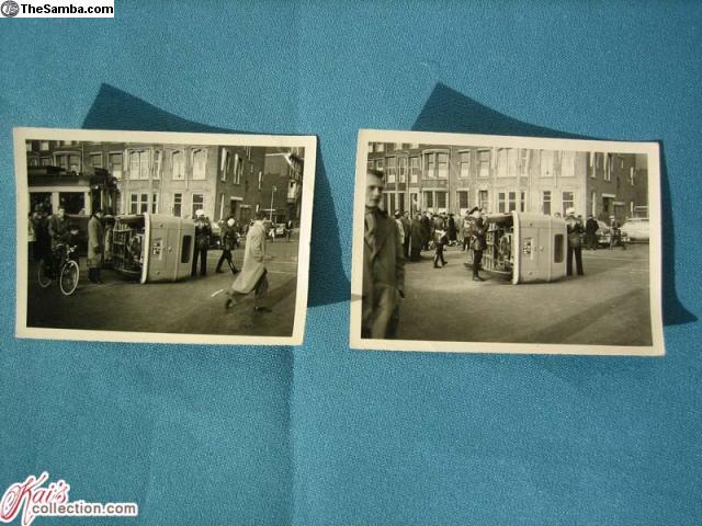 This pressed bumper brakelight decklid bus in The Netherlands tipped over on a crossroads.