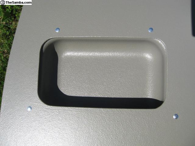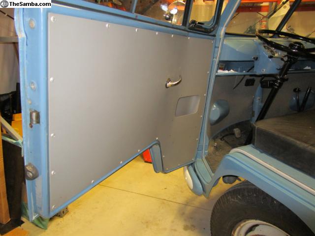 I also offer door panels with a modified pocket for the 12/63 through 67 buses with push button handles and the door prop.