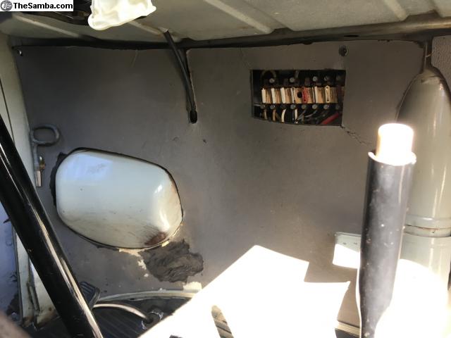 - March '55 through 2/60 buses take kick panels to fit the 6-fuse fusebox.