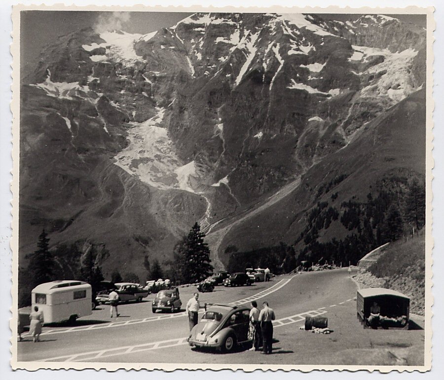 VW bug in the Alps, Germany or Switzerland, early 60's