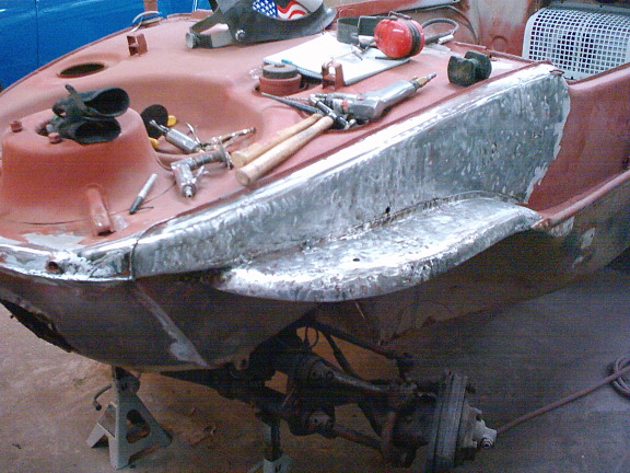 more pics for YOU- This was the intial metal repair... The owner drove this Schwimm into a big oak! Bent a bit up!