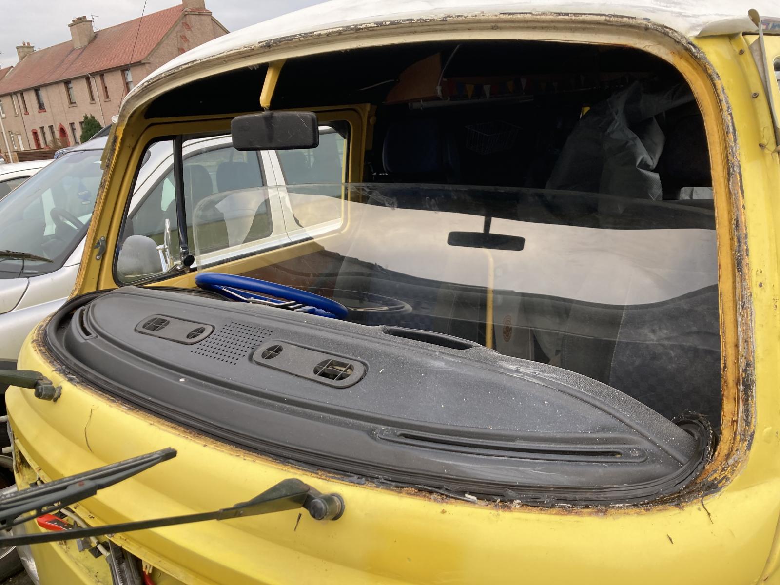 Removing the deteriorating rubber seal from a T2 windscreen.