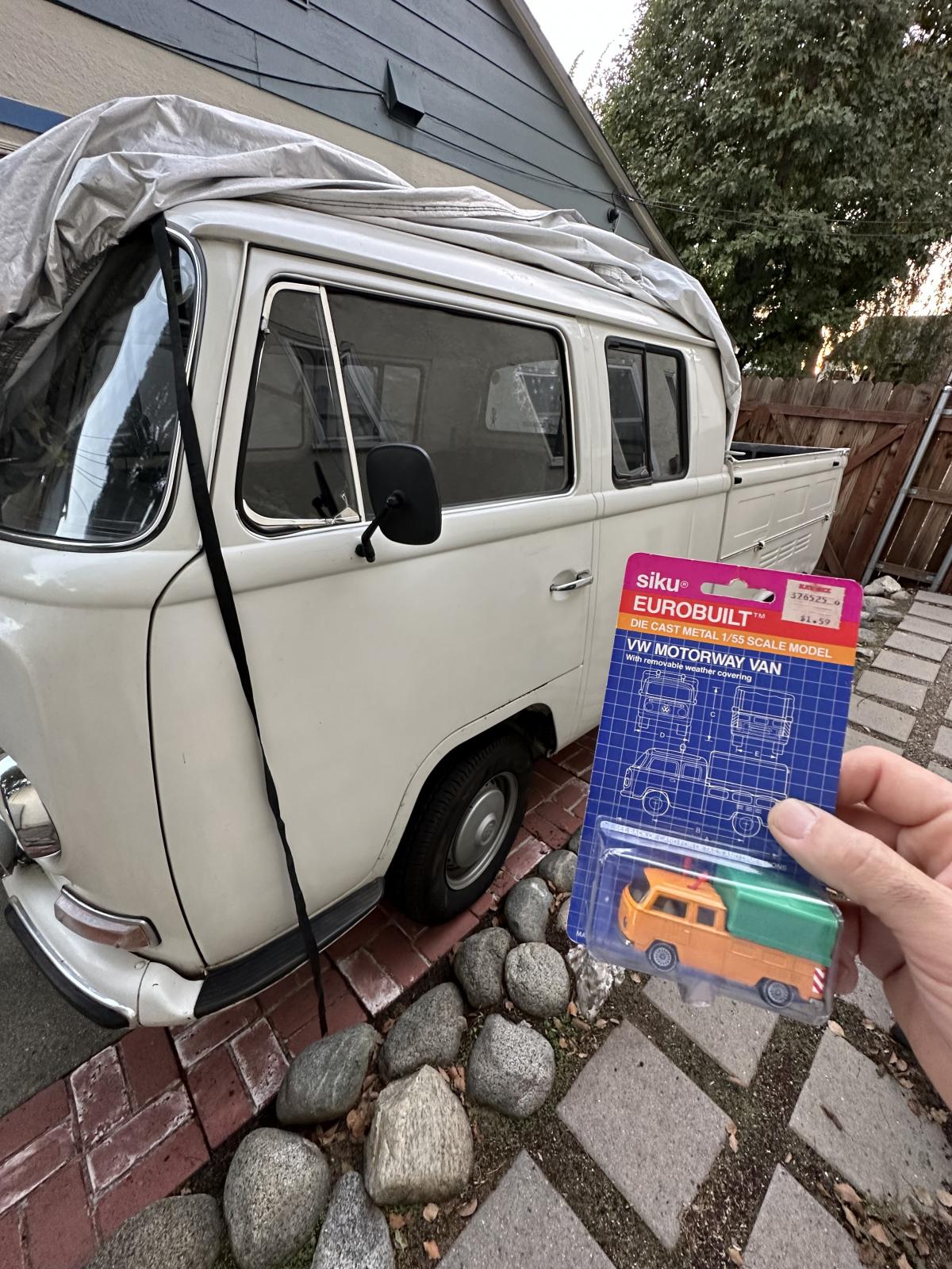 Found a MartÃn VW. License plate frame and Siku double cab.