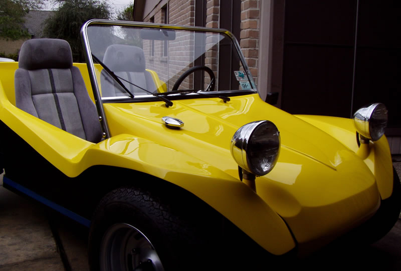 Also, be sure and check the floor pan and center tunnel VERY CAREFULLY for any rust. Because a buggy body offers almost no structural rigidity (like a bug body) the pan bears even more stress. One guy we knew had bought a very beautiful Manx type clone only to discover a little while later the whole front pan head was about to rust through and break off.