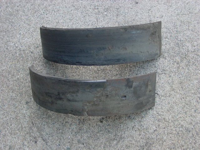 rock hard. Front brake shoes are wasted, lower shoe was running