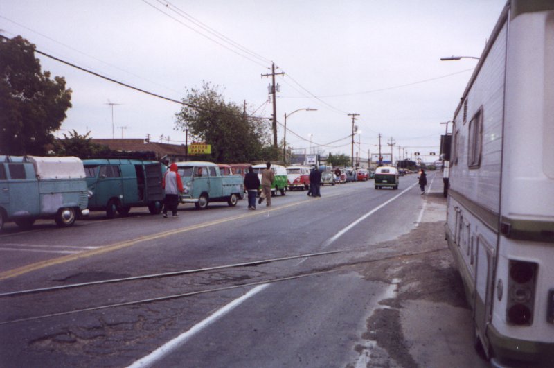 1.5 mile (my guess) line to get in, they had us weave through the parking lot like a line at an amusement park | '55 Panel in line Owned by Steven Johnson | '66 Squareback with all-red interior, appeared to be all-original |